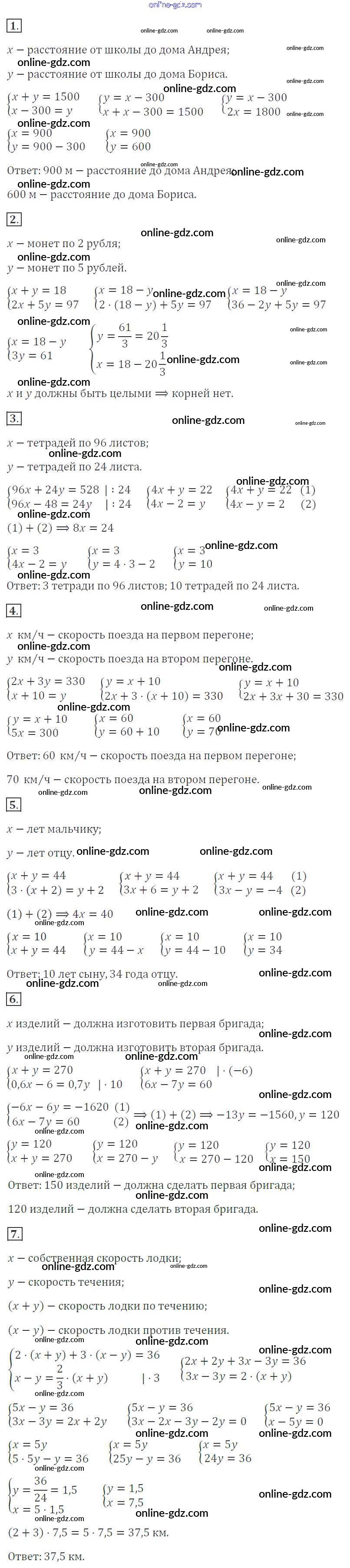 Готовые домашние задания по Алгебре за 7 класс Дидактические материалы Звавич, Кузнецова 2012 - Вариант 1 Самостоятельные работы. Варианты С-50. Решение задач с помощью составления системы уравнений