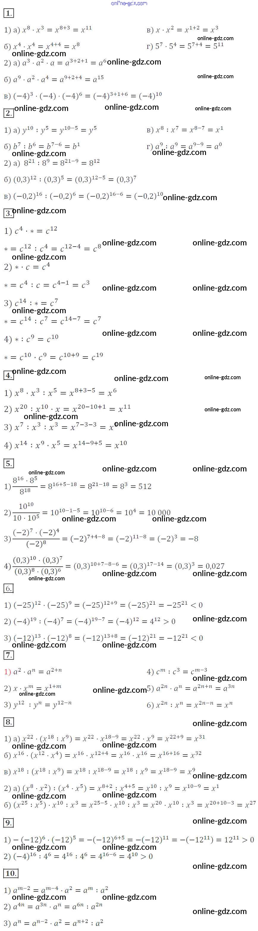 Готовые домашние задания по Алгебре за 7 класс Дидактические материалы Звавич, Кузнецова 2012 - Вариант 2 Самостоятельные работы. Варианты С-20. Умножение и деление степеней с одинаковыми основаниями