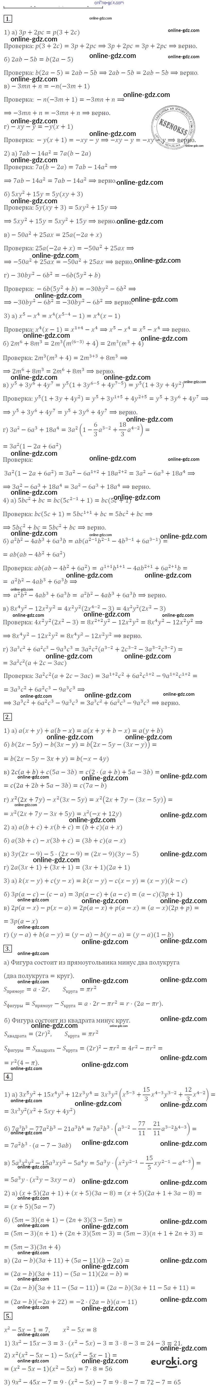 Готовые домашние задания по Алгебре за 7 класс Дидактические материалы Звавич, Кузнецова 2012 - Вариант 2 Самостоятельные работы. Варианты С-32. Вынесение общего множителя за скобки