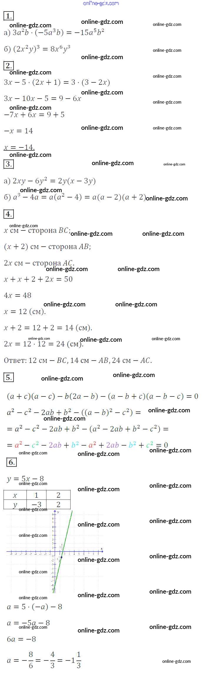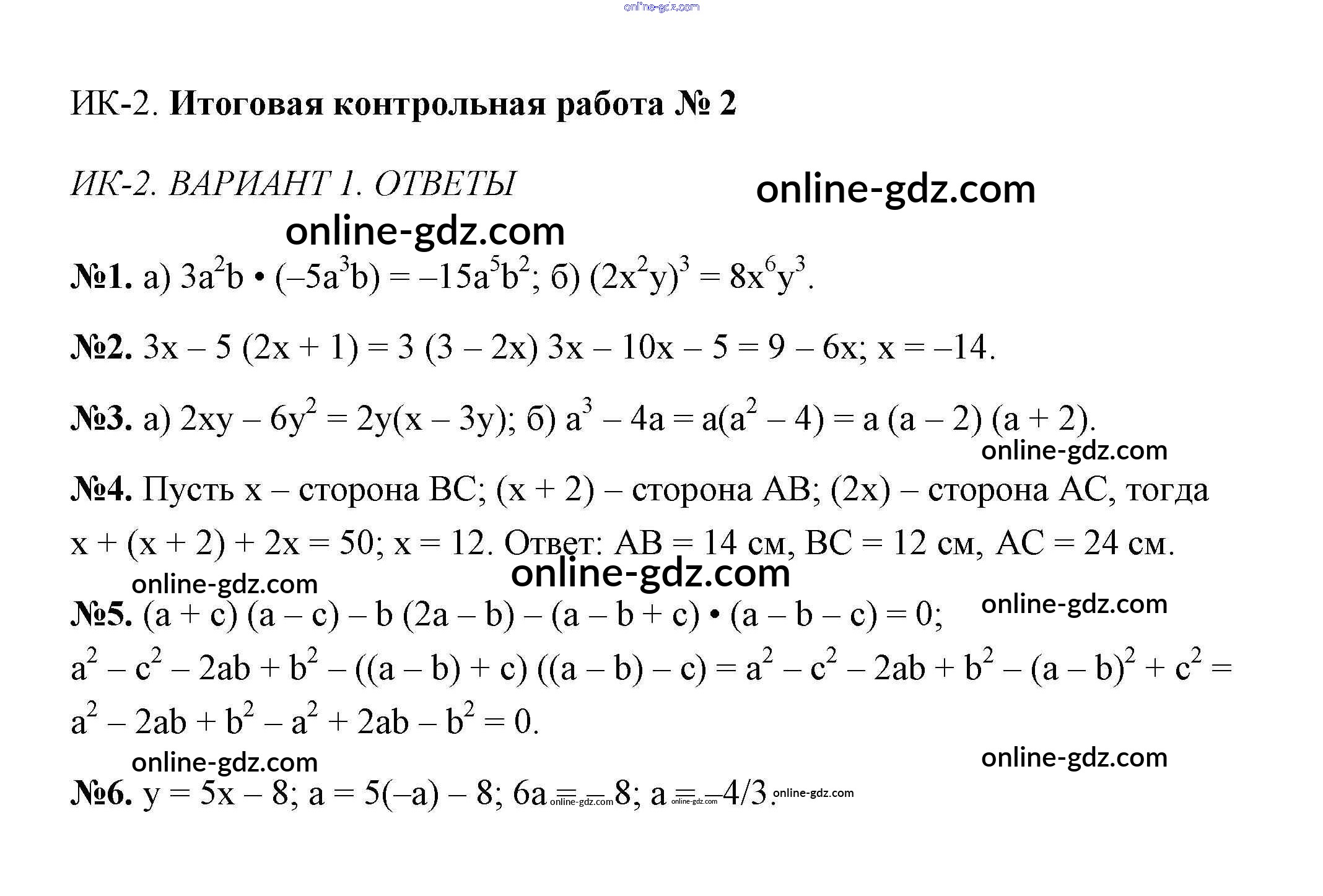 Готовые домашние задания по Алгебре за 7 класс Дидактические материалы Звавич, Кузнецова 2012 - Вариант 1 Контрольные работы ik-2