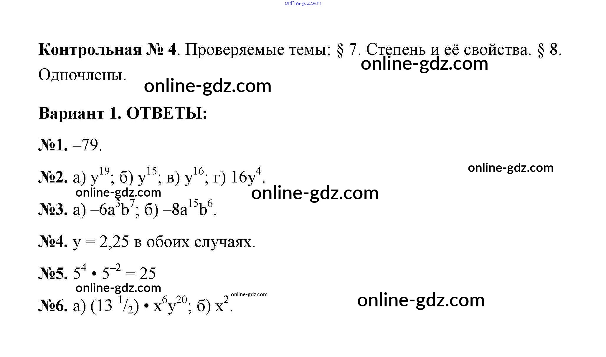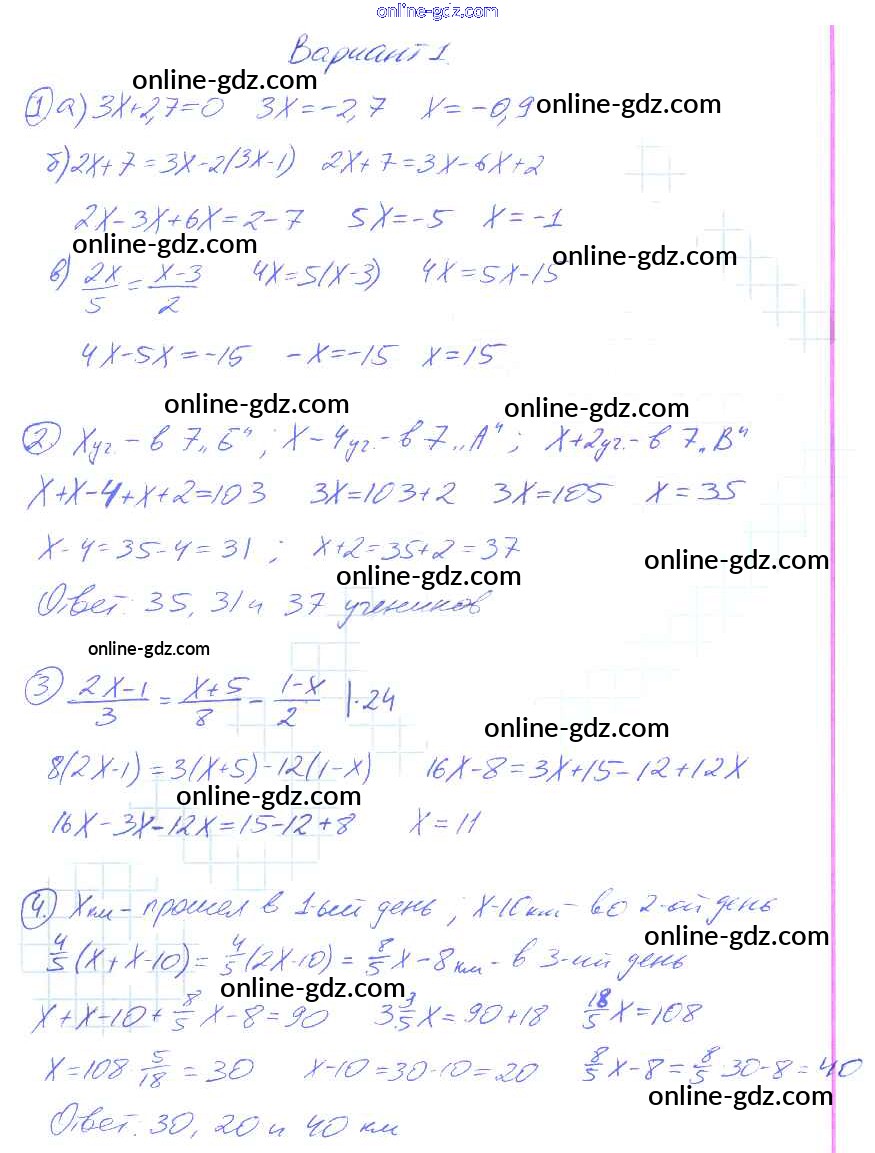 Готовые домашние задания по Алгебре за 7 класс Дидактические материалы Звавич, Кузнецова 2012 - Вариант 1 Контрольные работы k-2a