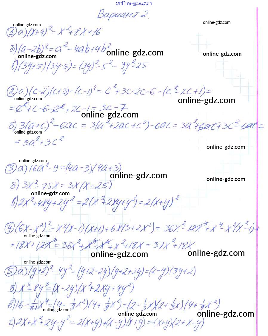 Готовые домашние задания по Алгебре за 7 класс Дидактические материалы Звавич, Кузнецова 2012 - Вариант 2 Контрольные работы k-6a