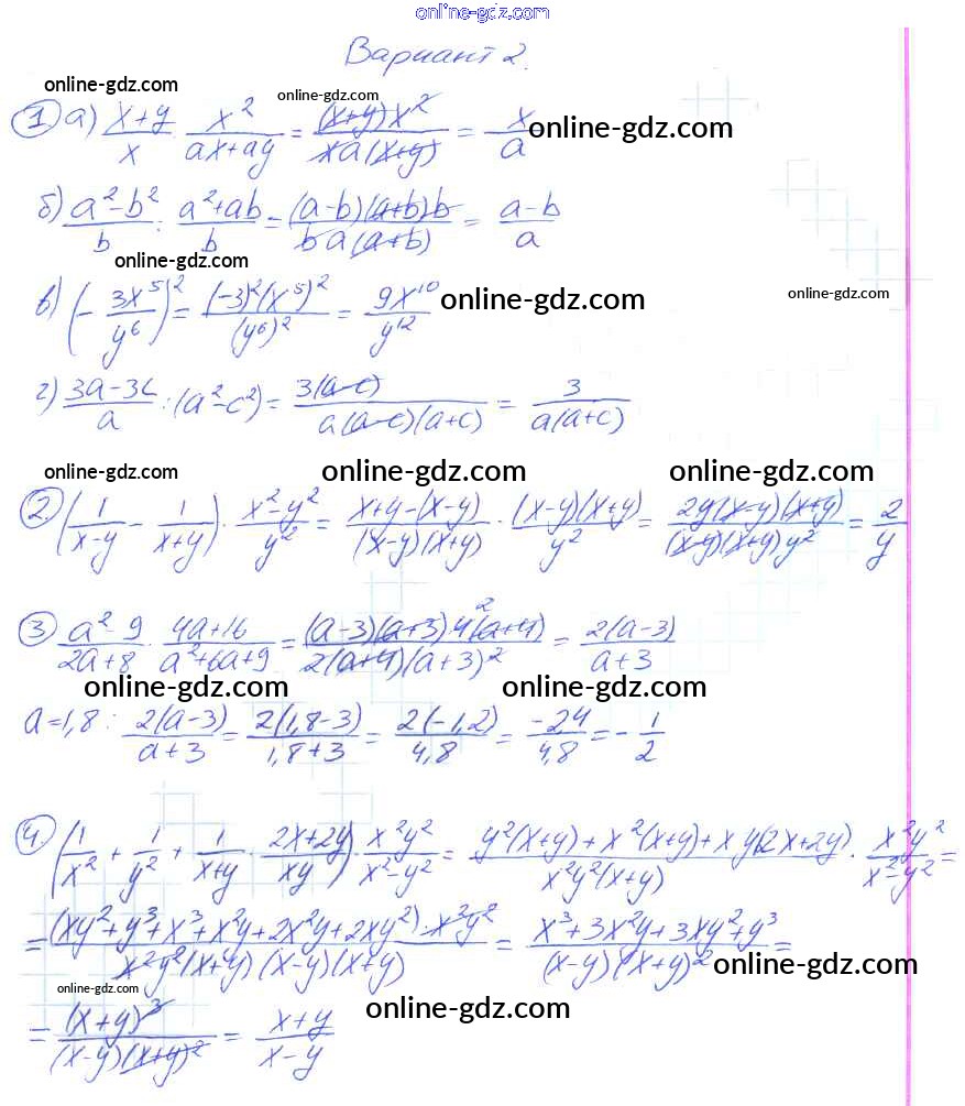 Готовые домашние задания по Алгебре за 7 класс Дидактические материалы Звавич, Кузнецова 2012 - Вариант 2 Контрольные работы k-8a