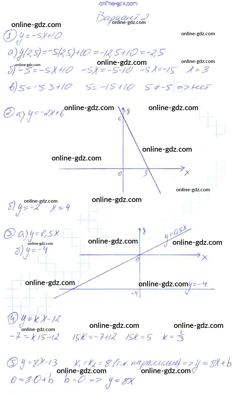 Готовые домашние задания по Алгебре за 7 класс Дидактические материалы Звавич, Кузнецова 2012 - Вариант 2 Контрольные работы k-9a