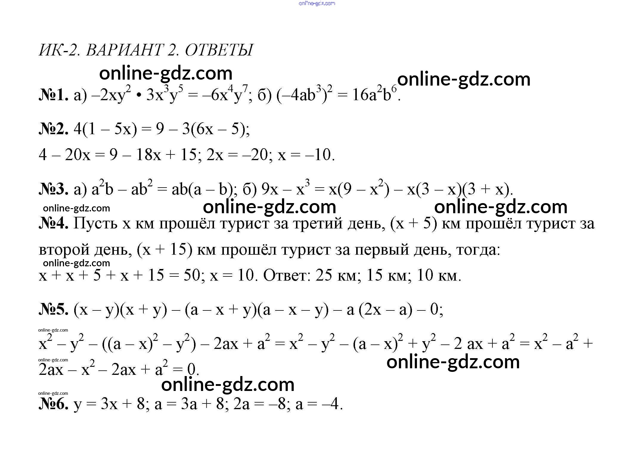 Готовые домашние задания по Алгебре за 7 класс Дидактические материалы Звавич, Кузнецова 2012 - Вариант 2 Контрольные работы ik-2