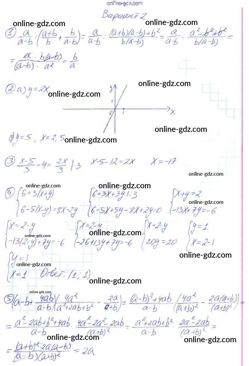 Готовые домашние задания по Алгебре за 7 класс Дидактические материалы Звавич, Кузнецова 2012 - Вариант 2 Контрольные работы ik-3a