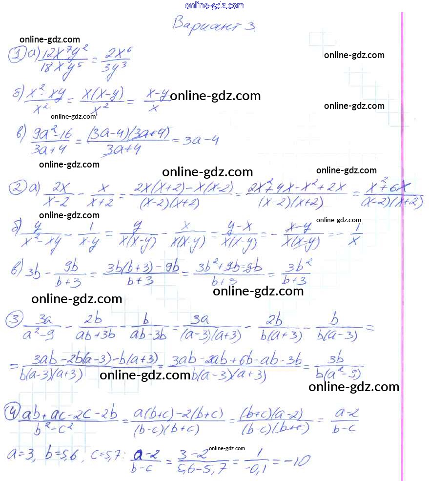Готовые домашние задания по Алгебре за 7 класс Дидактические материалы Звавич, Кузнецова 2012 - Вариант 3 Контрольные работы k-7a