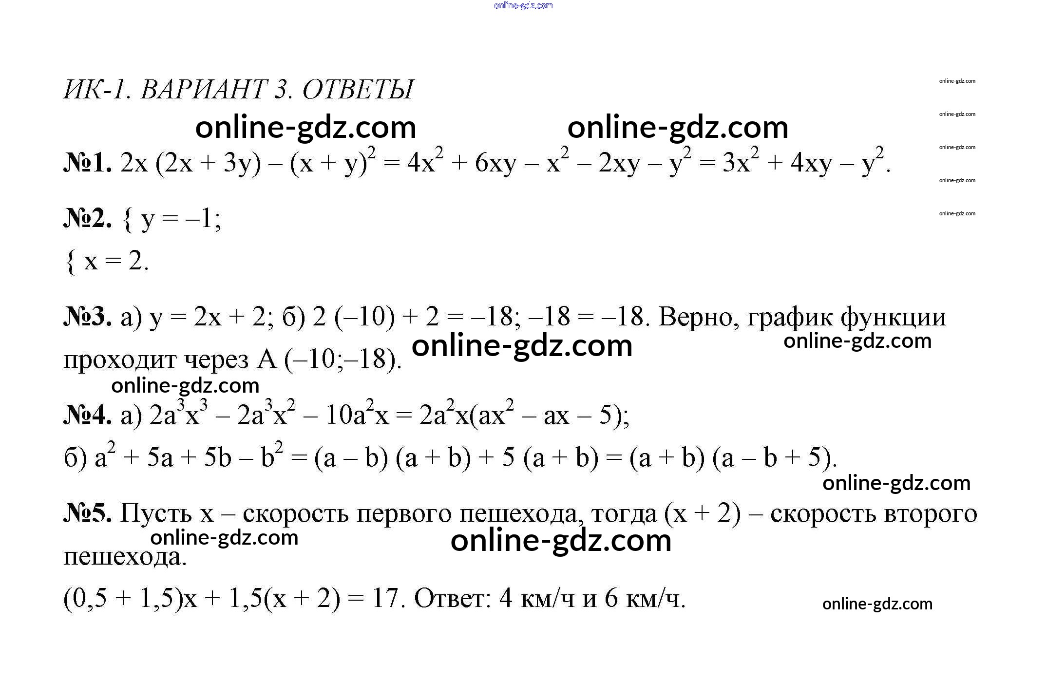 Готовые домашние задания по Алгебре за 7 класс Дидактические материалы Звавич, Кузнецова 2012 - Вариант 3 Контрольные работы ik-1