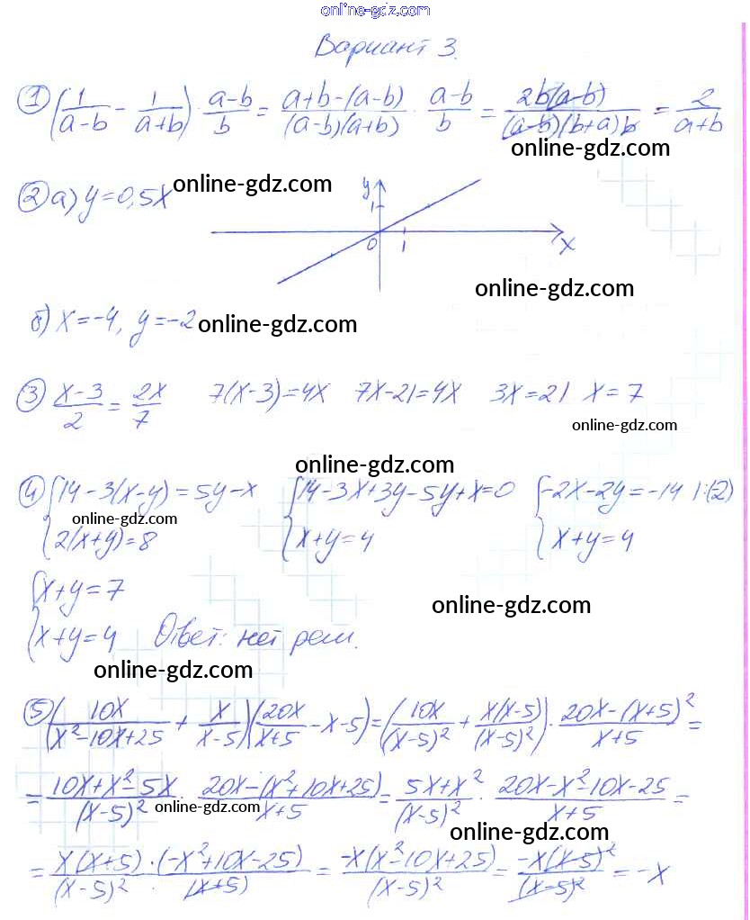 Готовые домашние задания по Алгебре за 7 класс Дидактические материалы Звавич, Кузнецова 2012 - Вариант 3 Контрольные работы ik-3a