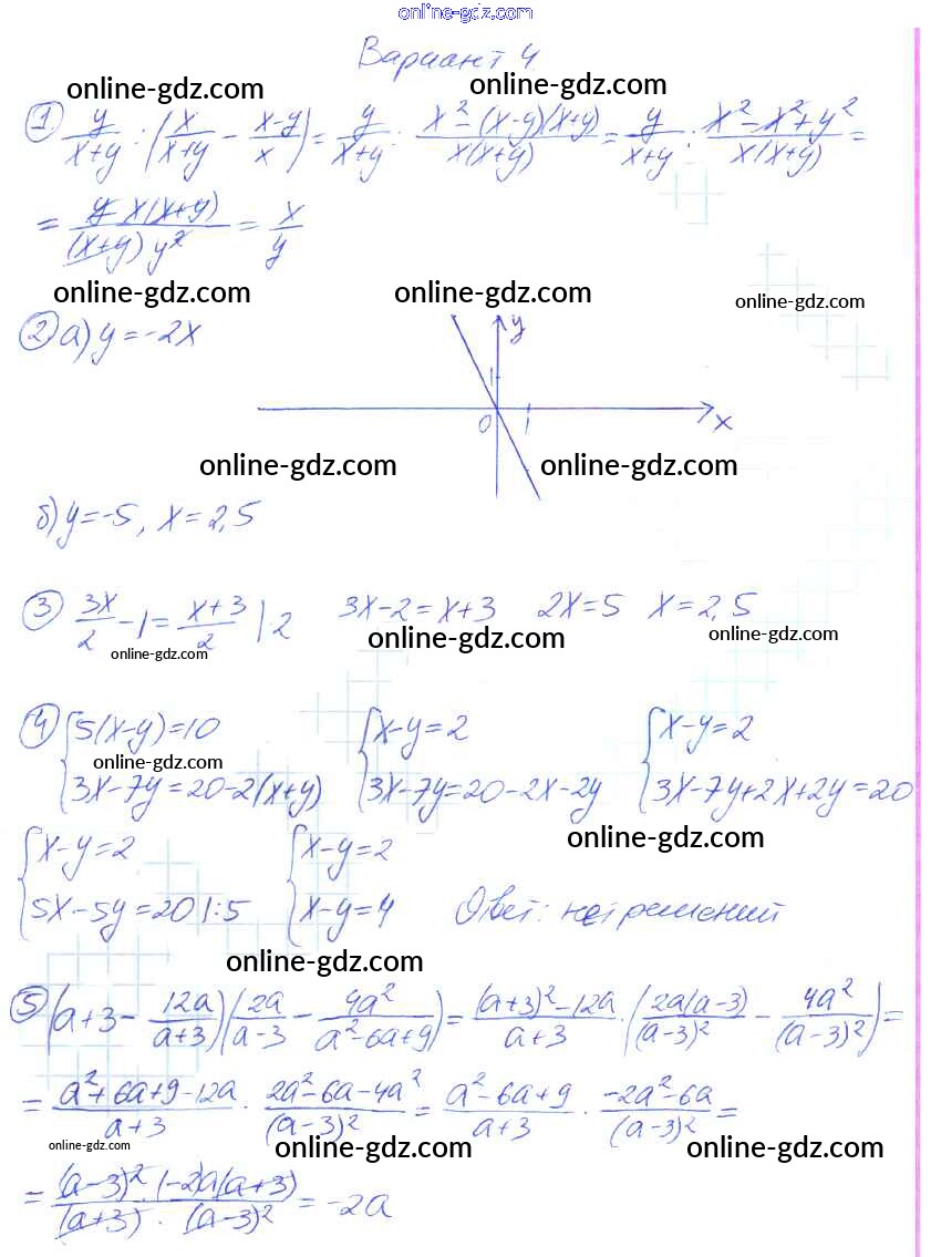 Готовые домашние задания по Алгебре за 7 класс Дидактические материалы Звавич, Кузнецова 2012 - Вариант 4 Контрольные работы ik-3a