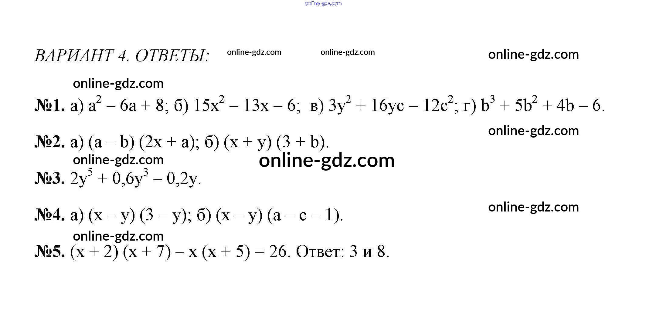 Готовые домашние задания по Алгебре за 7 класс Дидактические материалы Звавич, Кузнецова 2012 - Вариант 4 Контрольные работы k-3a