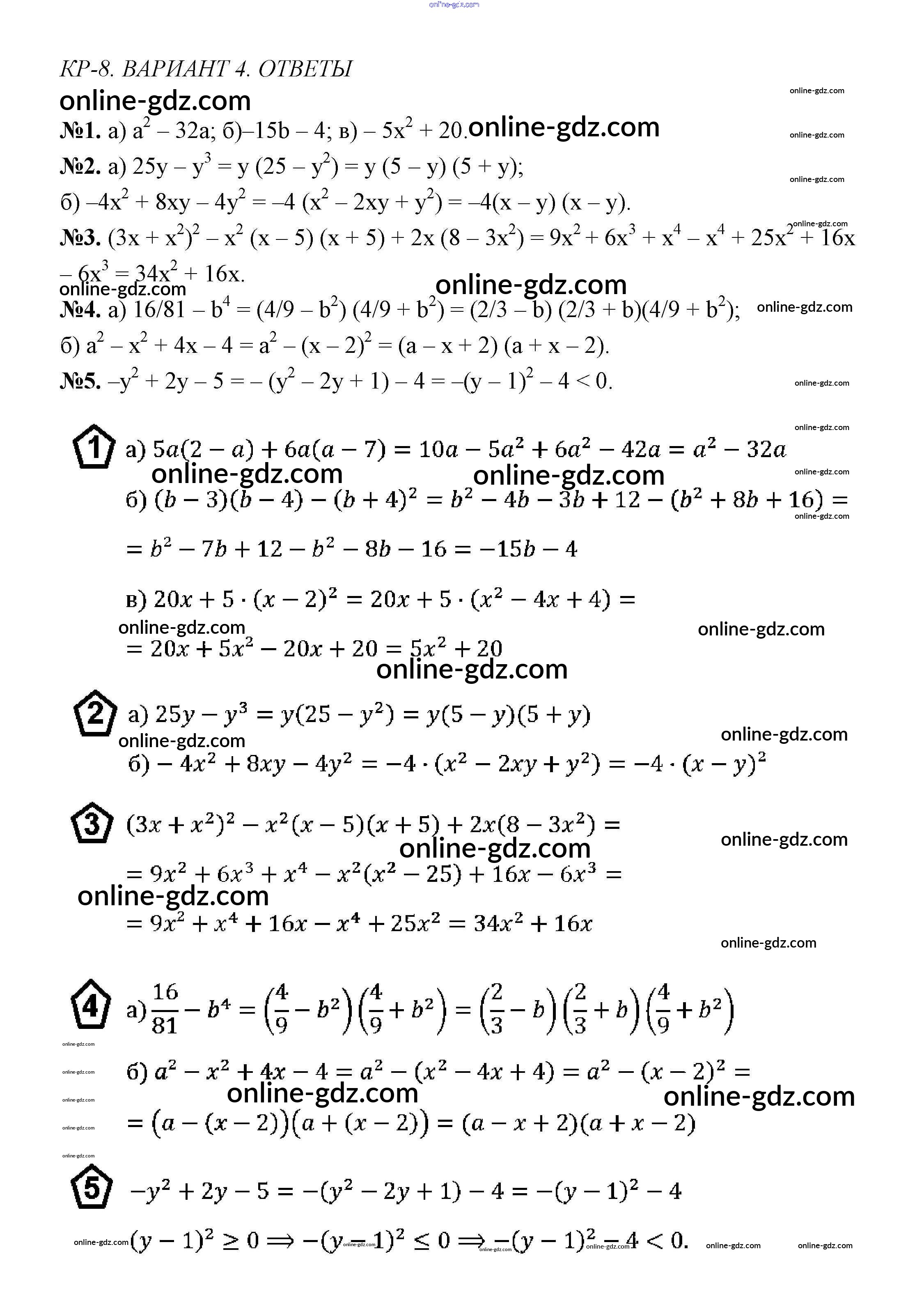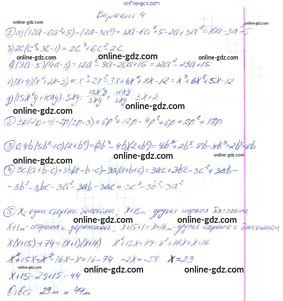 Готовые домашние задания по Алгебре за 7 класс Дидактические материалы Звавич, Кузнецова 2012 - Вариант 4 Контрольные работы k-4a