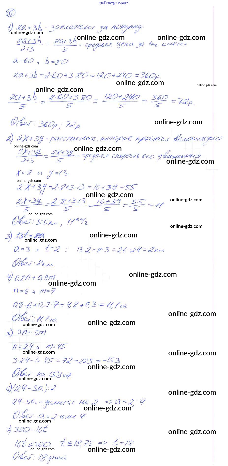 Готовые домашние задания по Алгебре за 7 класс Дидактические материалы Евстафьева, Карп 2018 - О-14 Обучающие работы 6