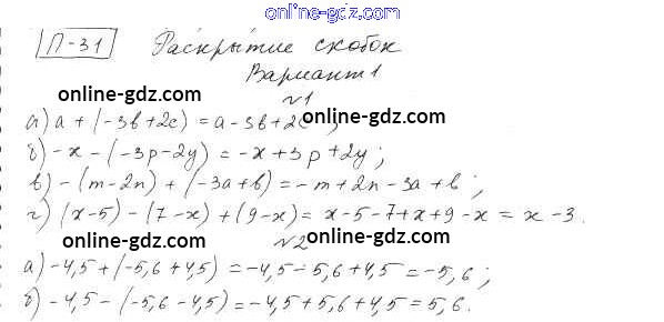 Готовые домашние задания по Алгебре за 7 класс Дидактические материалы Евстафьева, Карп 2018 - ПР-31 Проверочные работы вариант 1