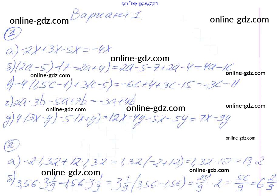 Готовые домашние задания по Алгебре за 7 класс Дидактические материалы Евстафьева, Карп 2018 - ПР-33 Проверочные работы вариант 1