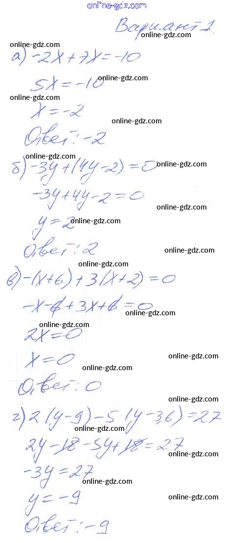 Готовые домашние задания по Алгебре за 7 класс Дидактические материалы Евстафьева, Карп 2018 - ПР-34 Проверочные работы вариант 1