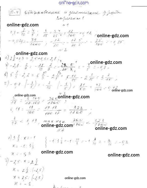 Готовые домашние задания по Алгебре за 7 класс Дидактические материалы Евстафьева, Карп 2018 - ПР-4 Проверочные работы вариант 1