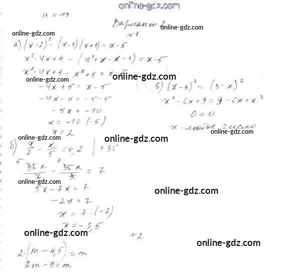 Готовые домашние задания по Алгебре за 7 класс Дидактические материалы Евстафьева, Карп 2018 - ПР-57 Проверочные работы вариант 2
