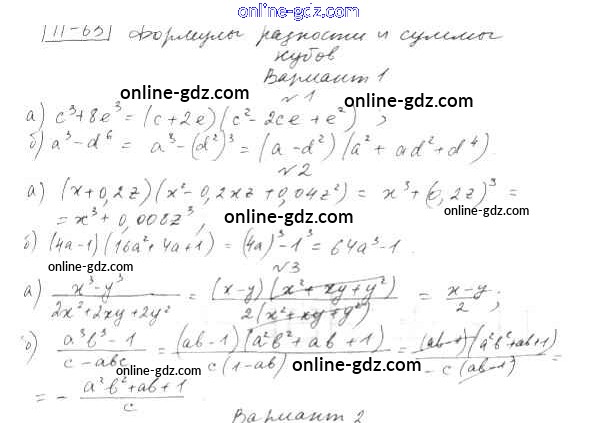 Готовые домашние задания по Алгебре за 7 класс Дидактические материалы Евстафьева, Карп 2018 - ПР-63 Проверочные работы вариант 1