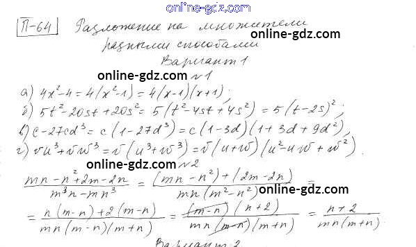 Готовые домашние задания по Алгебре за 7 класс Дидактические материалы Евстафьева, Карп 2018 - ПР-64 Проверочные работы вариант 1