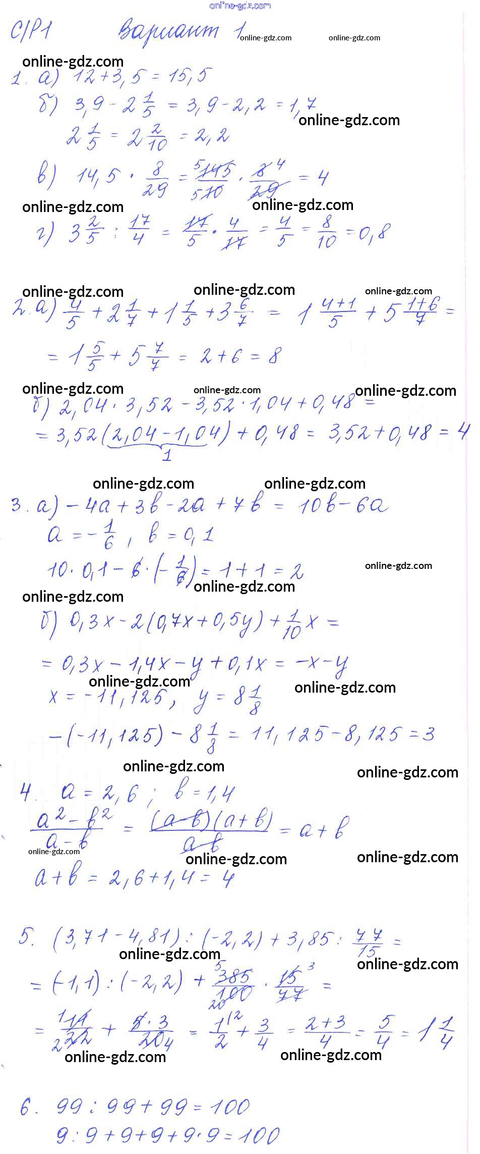 Готовые домашние задания по Алгебре за 7 класс Дидактические материалы Попов УМК 2016 - СР-1 Самостоятельные работы. Варианты 1