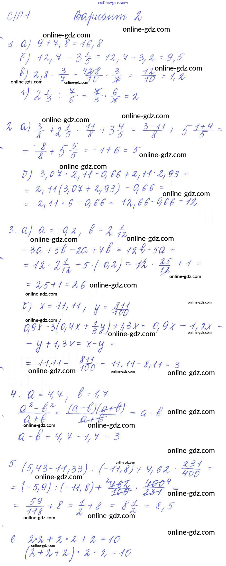 Готовые домашние задания по Алгебре за 7 класс Дидактические материалы Попов УМК 2016 - СР-1 Самостоятельные работы. Варианты 2
