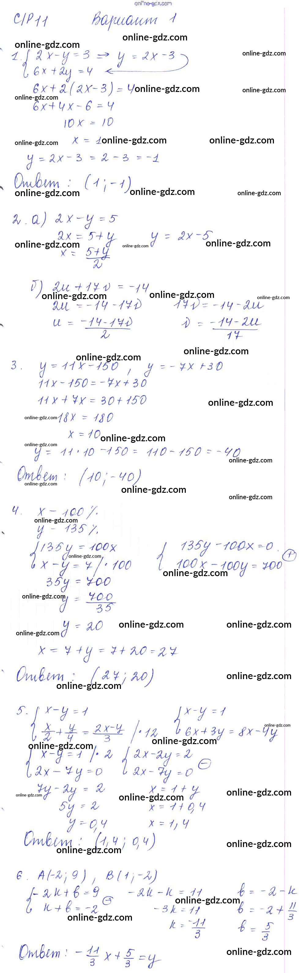 Готовые домашние задания по Алгебре за 7 класс Дидактические материалы Попов УМК 2016 - СР-11 Самостоятельные работы. Варианты 1
