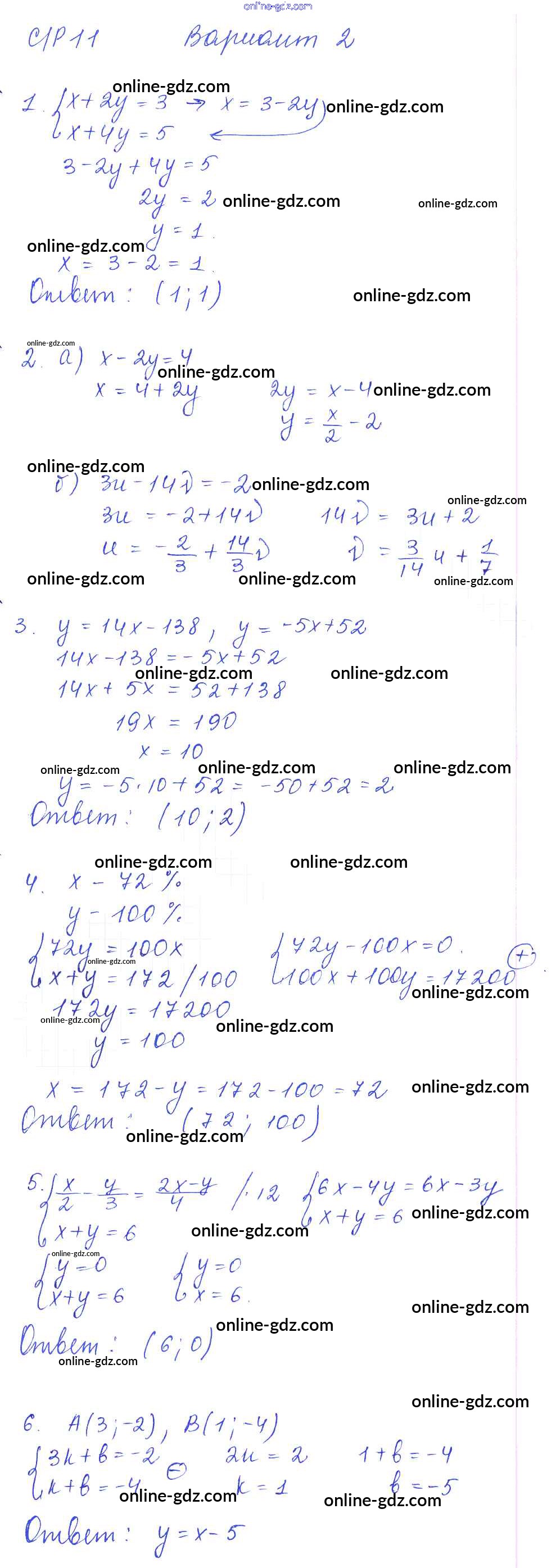 Готовые домашние задания по Алгебре за 7 класс Дидактические материалы Попов УМК 2016 - СР-11 Самостоятельные работы. Варианты 2