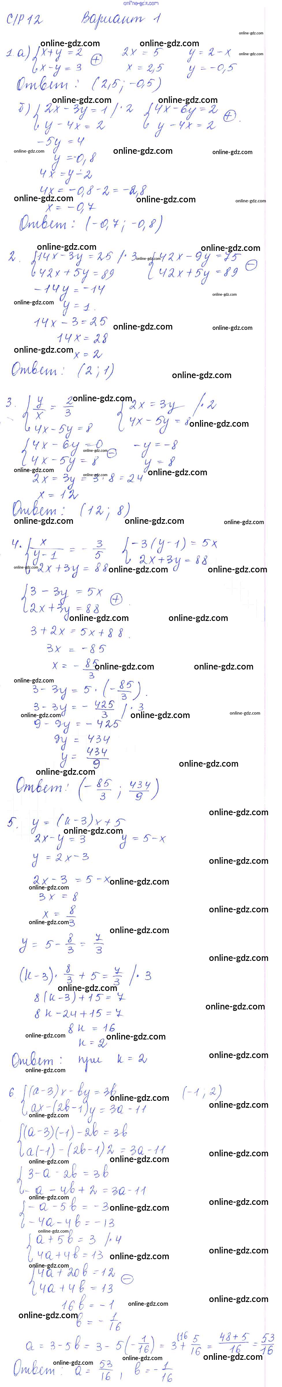 Готовые домашние задания по Алгебре за 7 класс Дидактические материалы Попов УМК 2016 - СР-12 Самостоятельные работы. Варианты 1