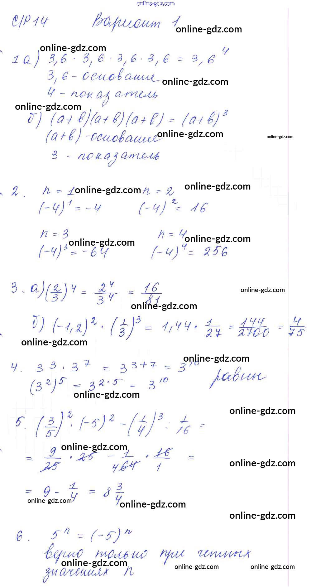 Готовые домашние задания по Алгебре за 7 класс Дидактические материалы Попов УМК 2016 - СР-14 Самостоятельные работы. Варианты 1