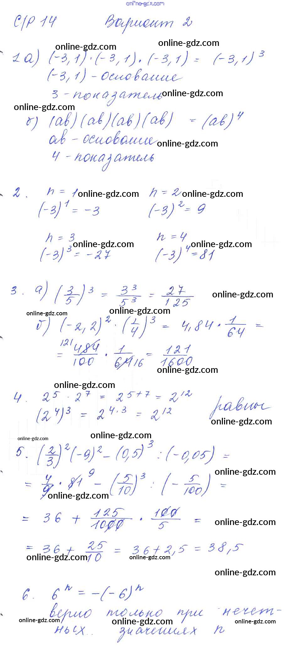 Готовые домашние задания по Алгебре за 7 класс Дидактические материалы Попов УМК 2016 - СР-14 Самостоятельные работы. Варианты 2