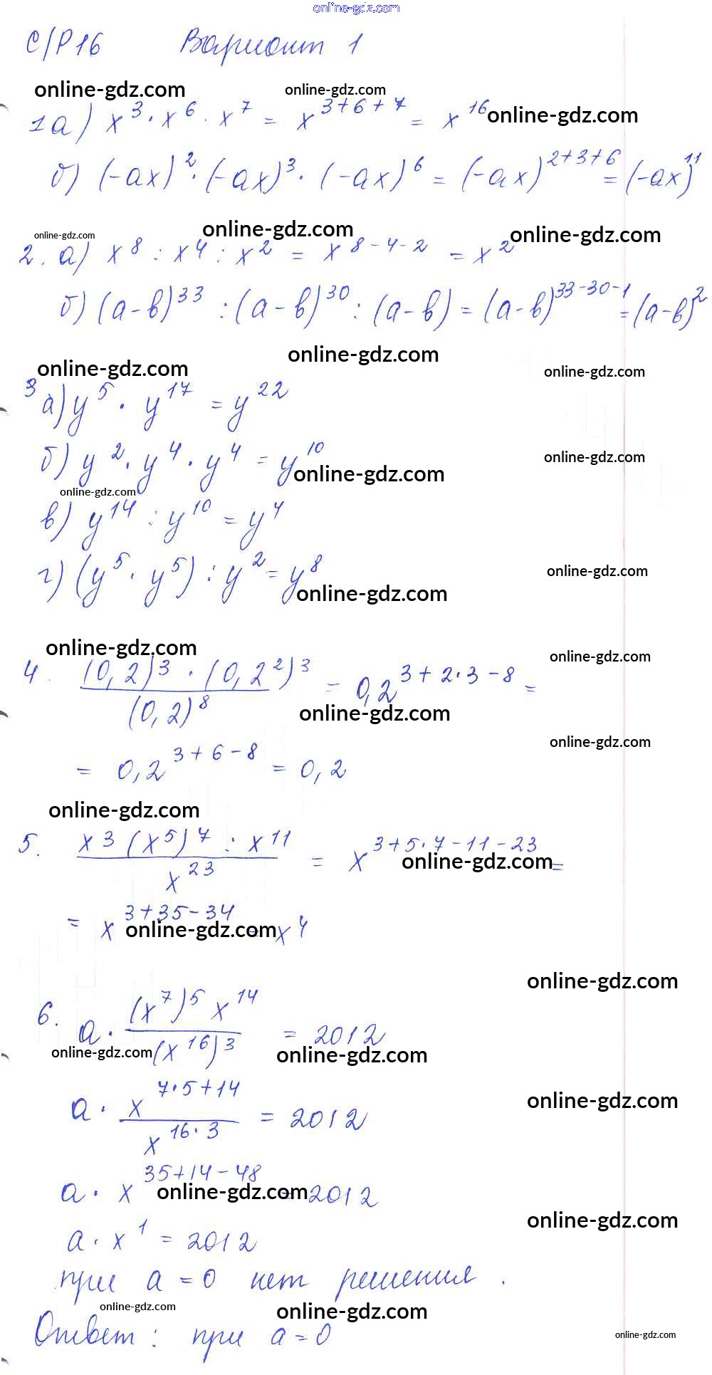 Готовые домашние задания по Алгебре за 7 класс Дидактические материалы Попов УМК 2016 - СР-16 Самостоятельные работы. Варианты 1