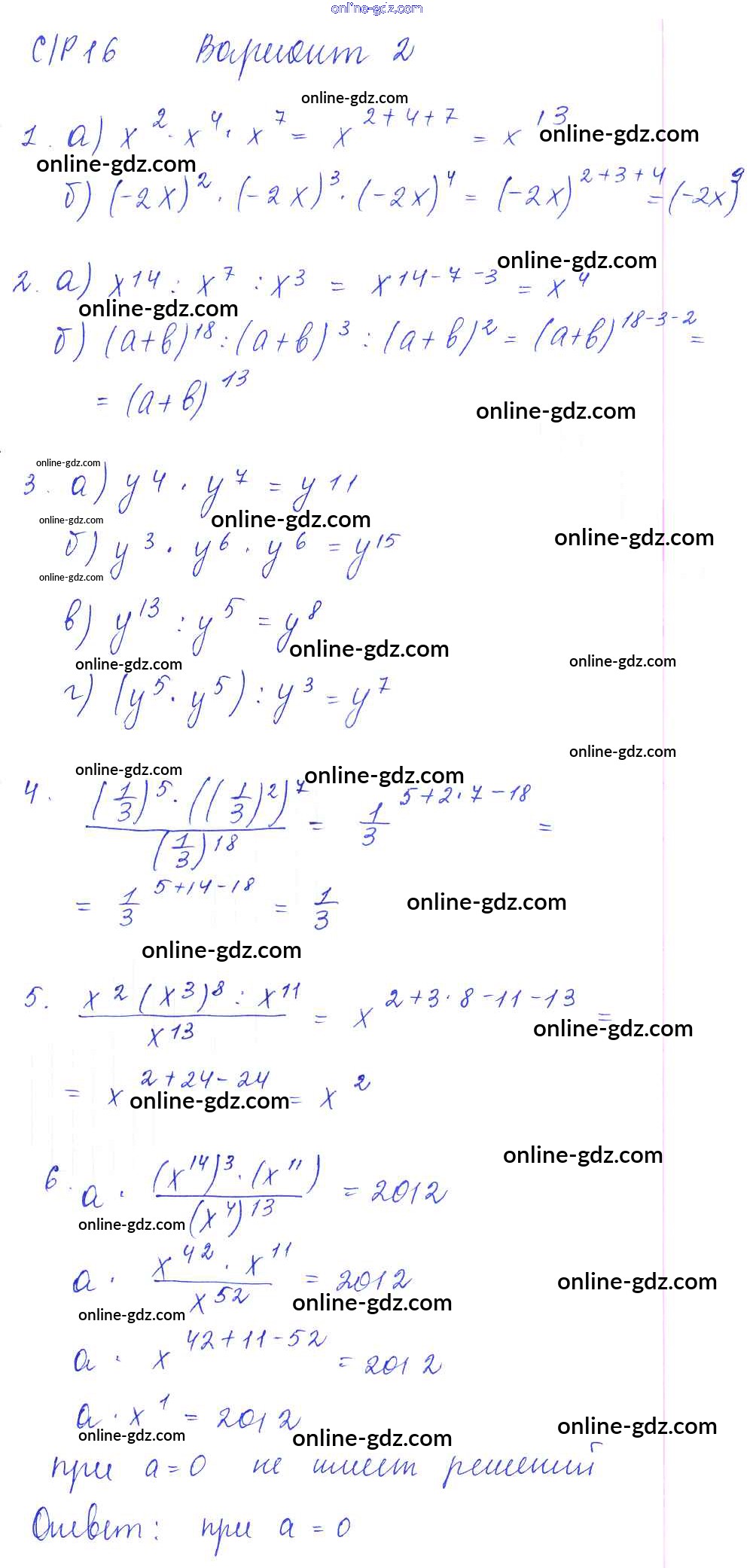 Готовые домашние задания по Алгебре за 7 класс Дидактические материалы Попов УМК 2016 - СР-16 Самостоятельные работы. Варианты 2