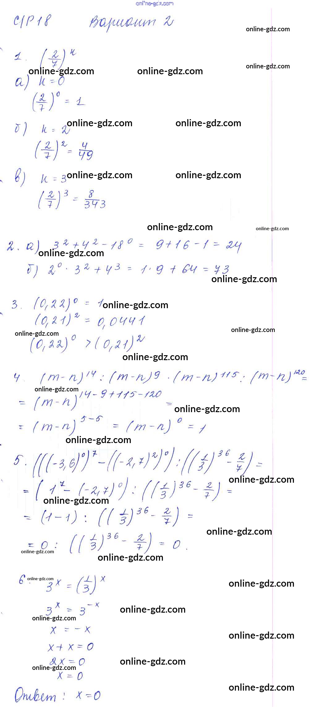 Готовые домашние задания по Алгебре за 7 класс Дидактические материалы Попов УМК 2016 - СР-18 Самостоятельные работы. Варианты 2