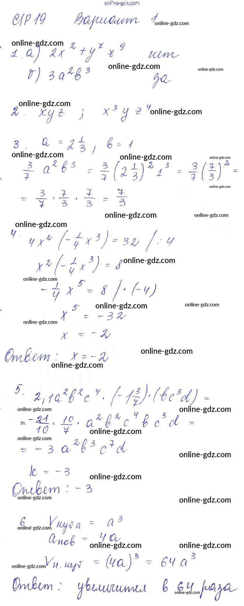 Готовые домашние задания по Алгебре за 7 класс Дидактические материалы Попов УМК 2016 - СР-19 Самостоятельные работы. Варианты 1