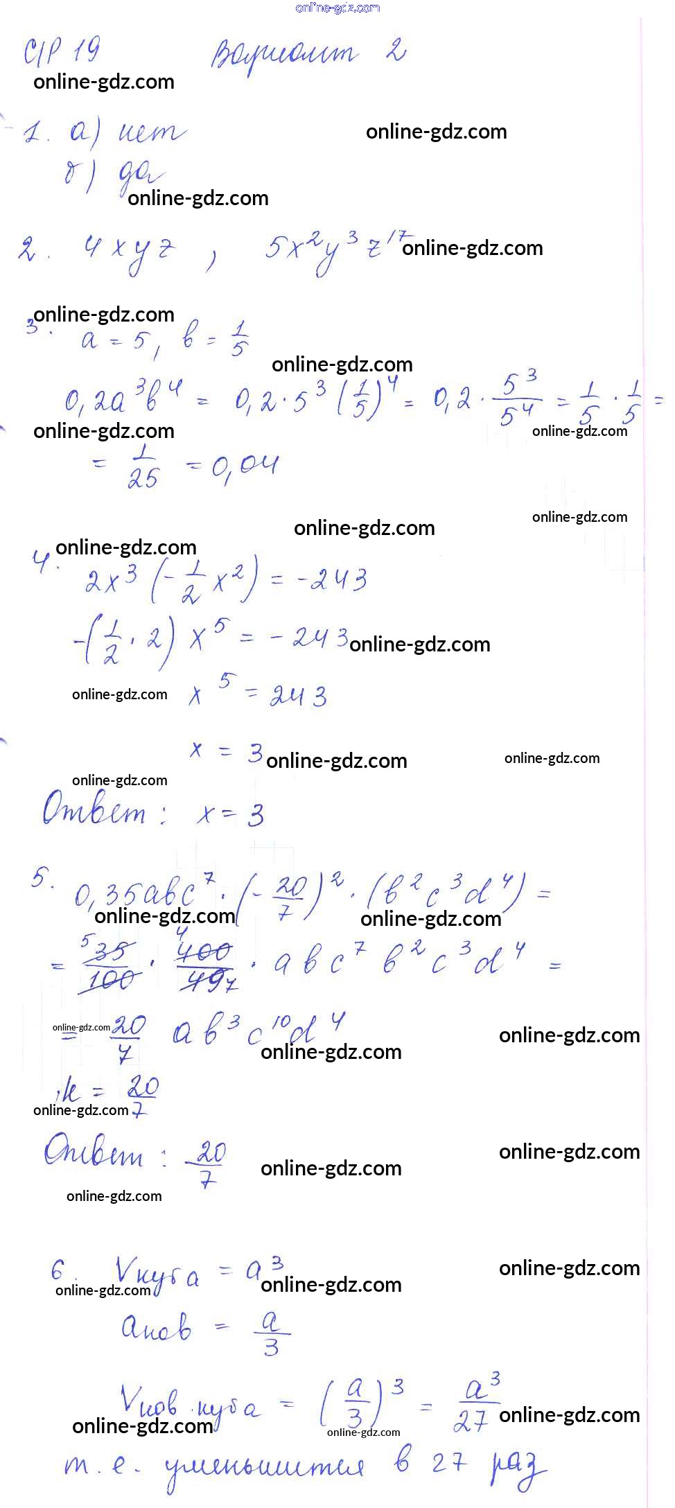 Готовые домашние задания по Алгебре за 7 класс Дидактические материалы Попов УМК 2016 - СР-19 Самостоятельные работы. Варианты 2