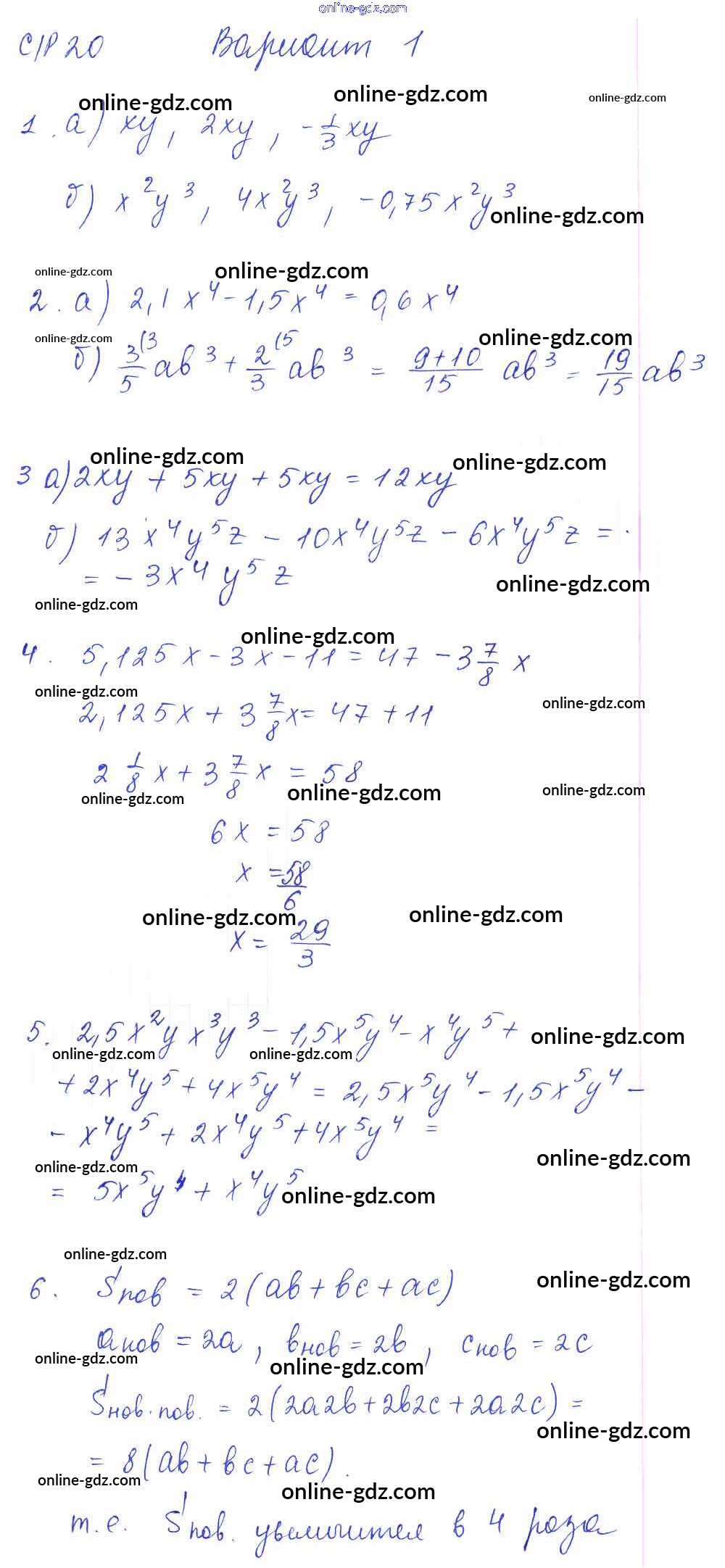 Готовые домашние задания по Алгебре за 7 класс Дидактические материалы Попов УМК 2016 - СР-20 Самостоятельные работы. Варианты 1
