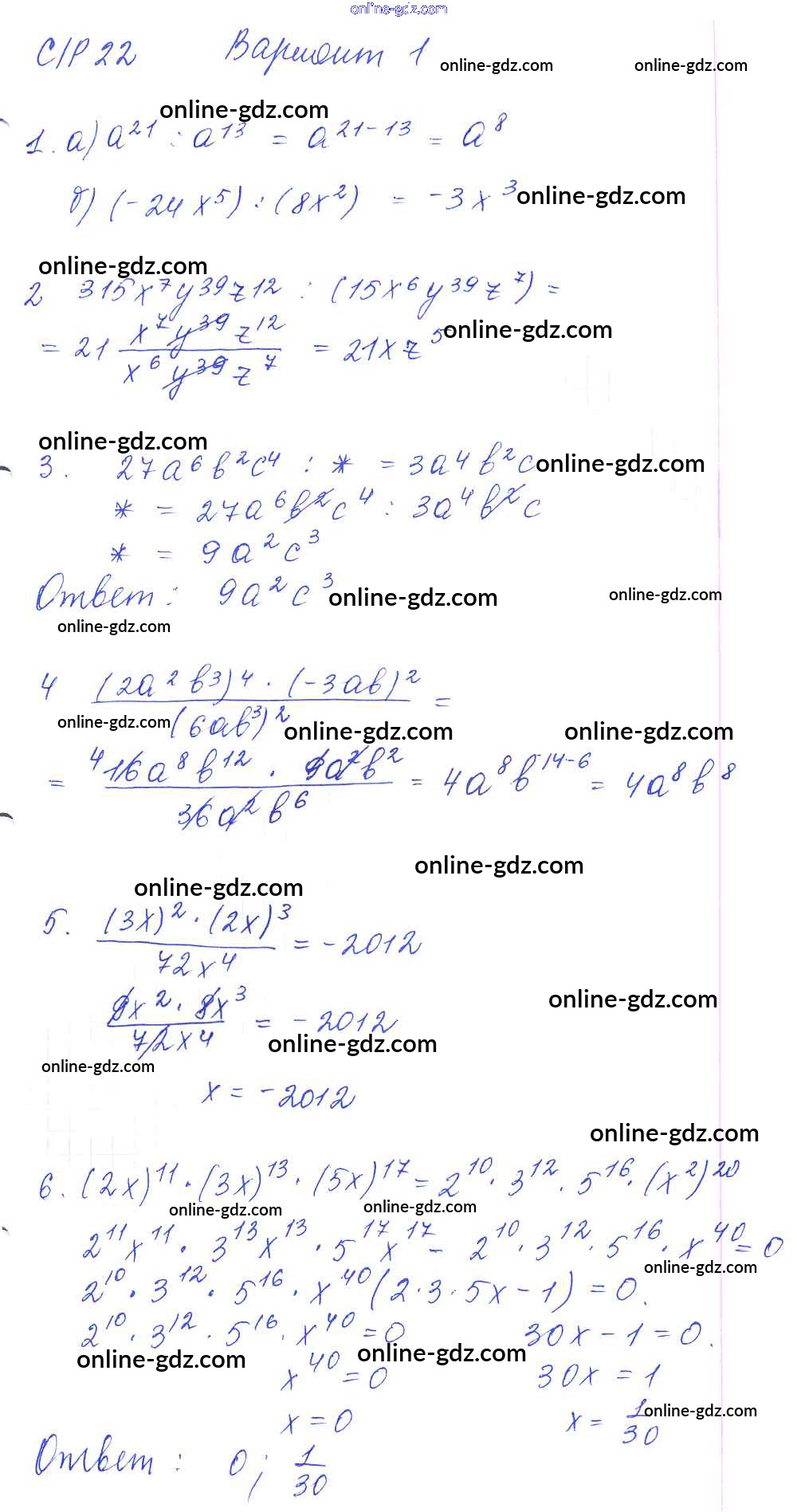 Готовые домашние задания по Алгебре за 7 класс Дидактические материалы Попов УМК 2016 - СР-22 Самостоятельные работы. Варианты 1
