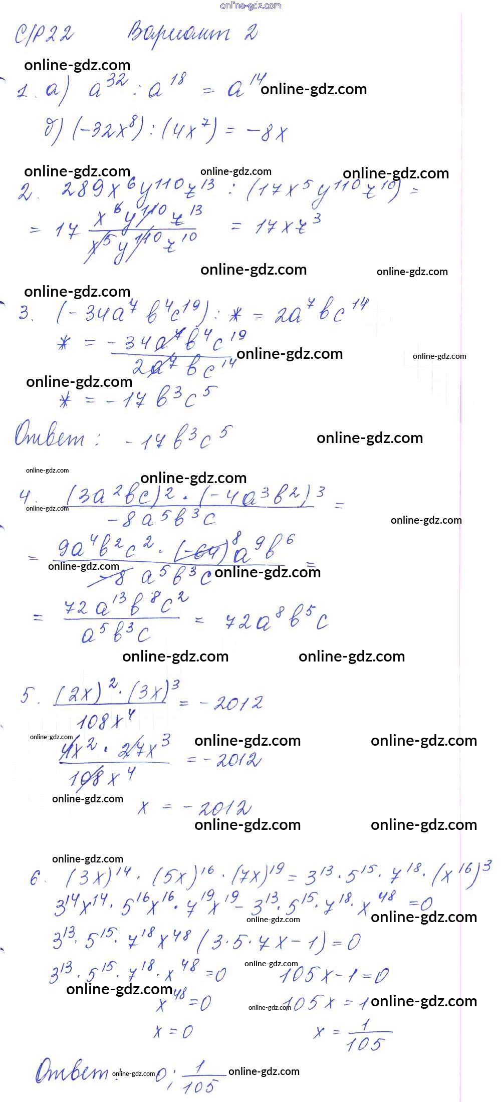 Готовые домашние задания по Алгебре за 7 класс Дидактические материалы Попов УМК 2016 - СР-22 Самостоятельные работы. Варианты 2