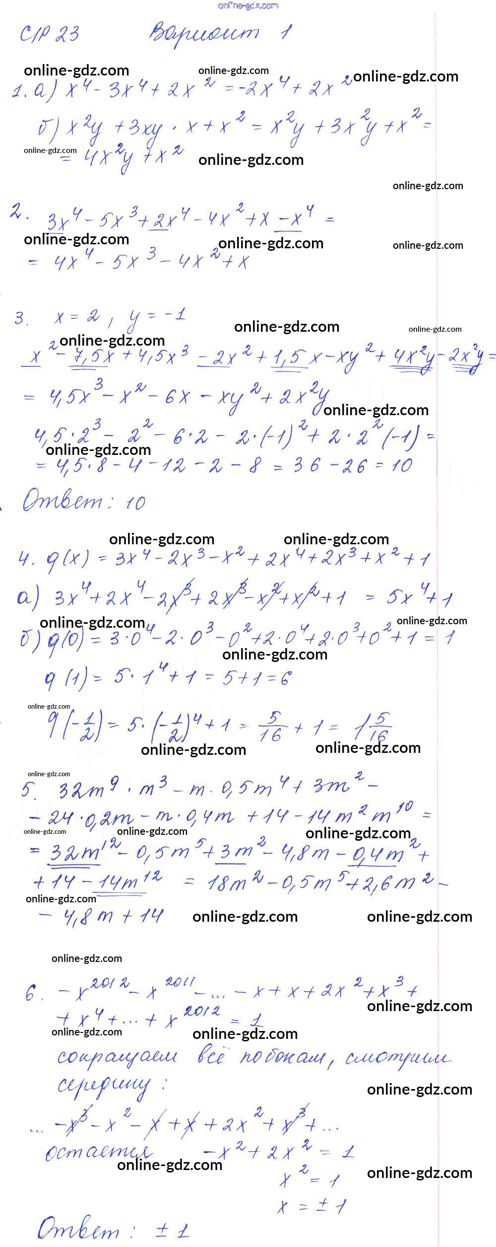 Готовые домашние задания по Алгебре за 7 класс Дидактические материалы Попов УМК 2016 - СР-23 Самостоятельные работы. Варианты 1