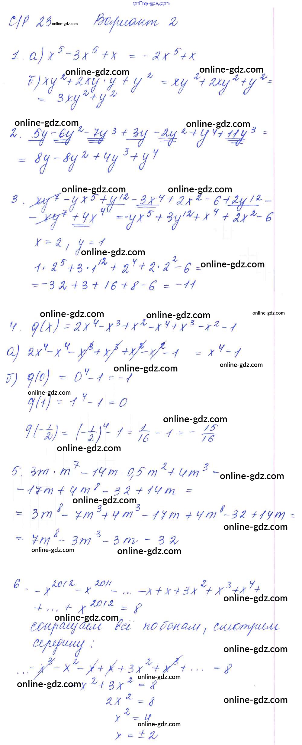 Готовые домашние задания по Алгебре за 7 класс Дидактические материалы Попов УМК 2016 - СР-23 Самостоятельные работы. Варианты 2