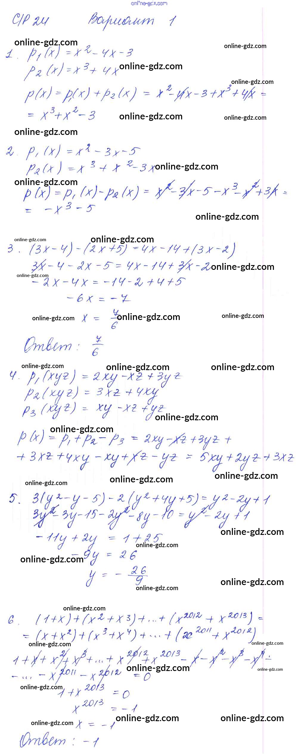 Готовые домашние задания по Алгебре за 7 класс Дидактические материалы Попов УМК 2016 - СР-24 Самостоятельные работы. Варианты 1