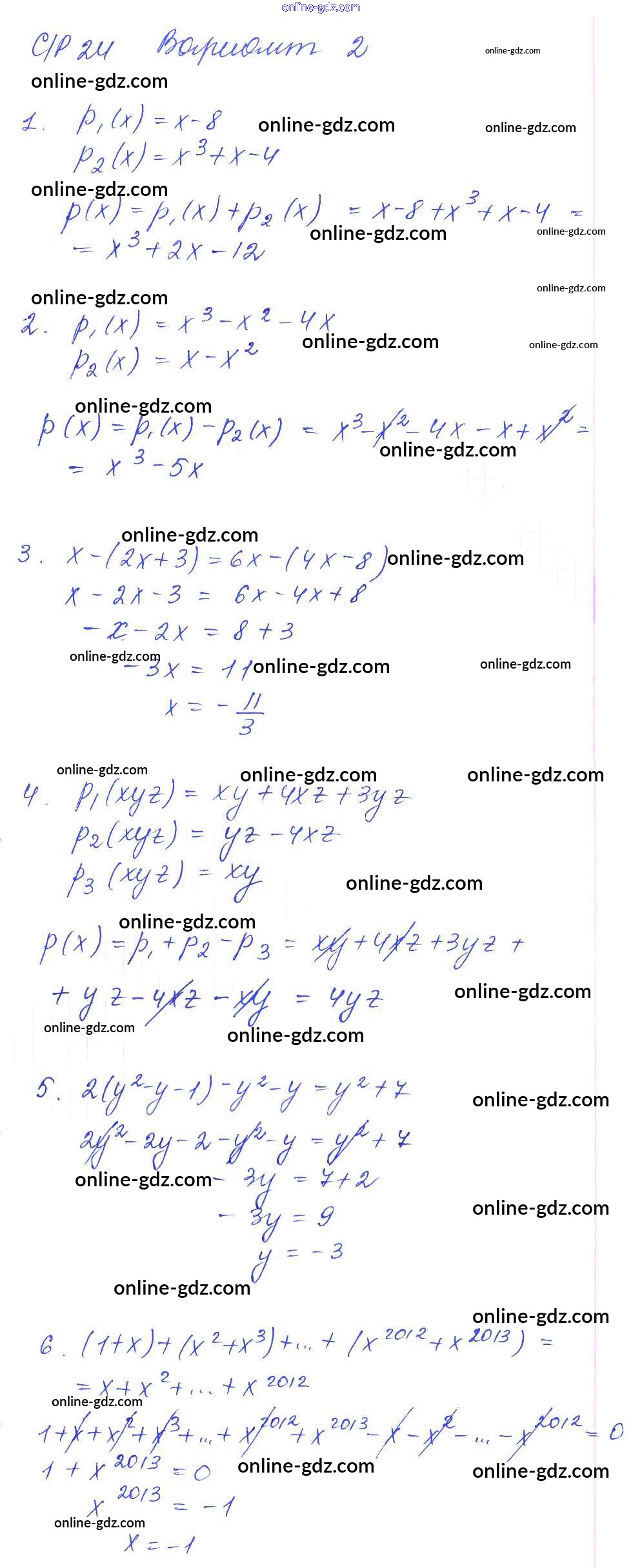 Готовые домашние задания по Алгебре за 7 класс Дидактические материалы Попов УМК 2016 - СР-24 Самостоятельные работы. Варианты 2