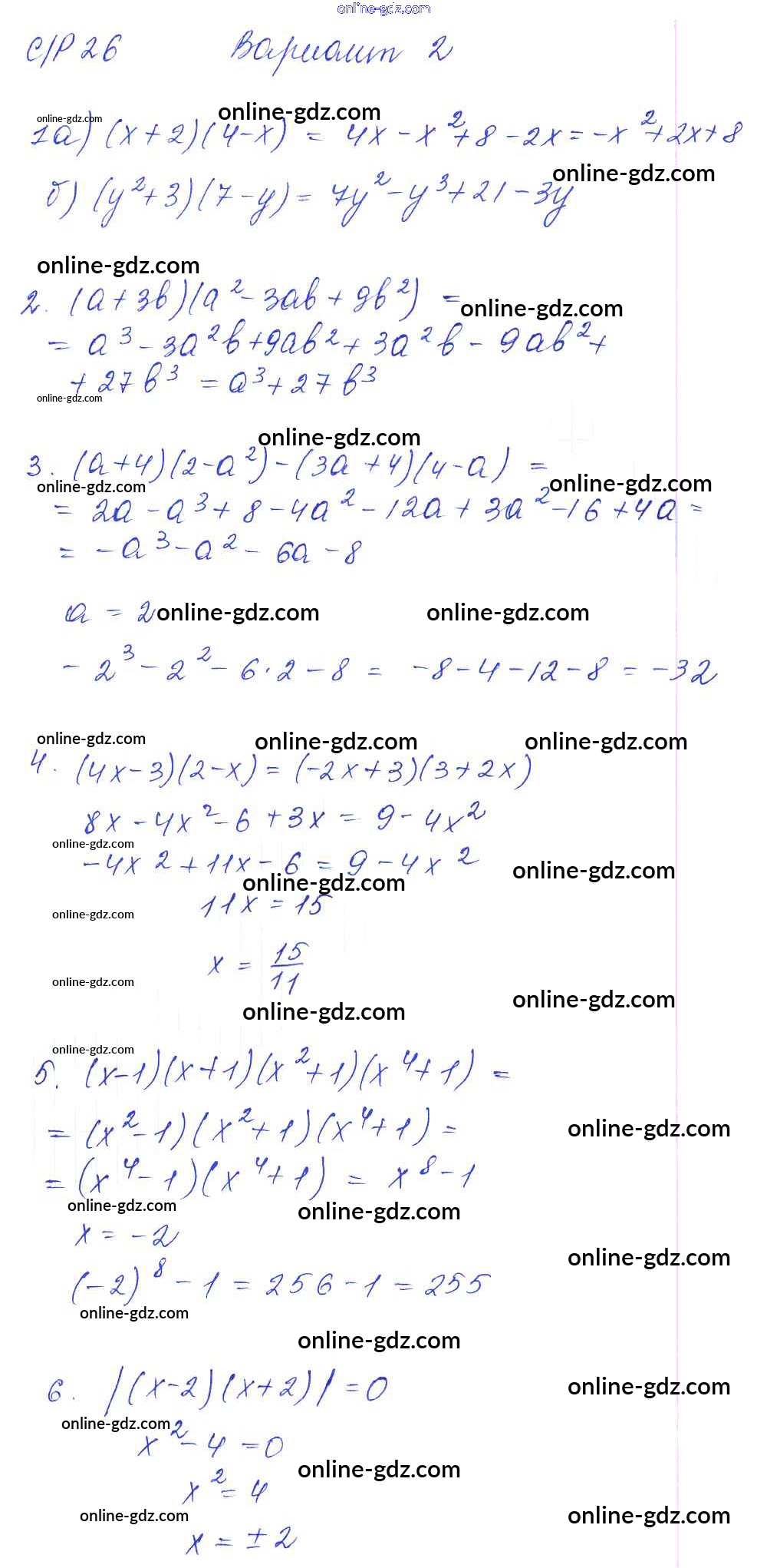 Готовые домашние задания по Алгебре за 7 класс Дидактические материалы Попов УМК 2016 - СР-26 Самостоятельные работы. Варианты 2