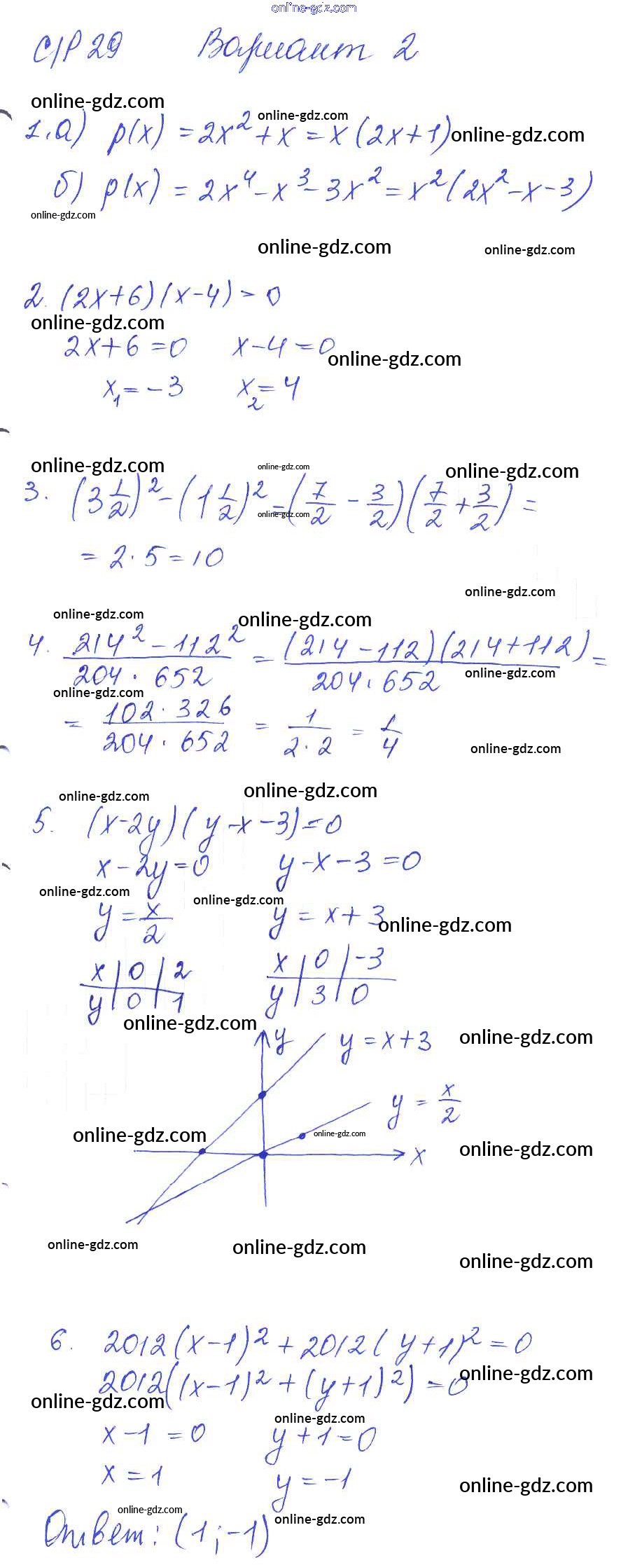 Готовые домашние задания по Алгебре за 7 класс Дидактические материалы Попов УМК 2016 - СР-29 Самостоятельные работы. Варианты 2