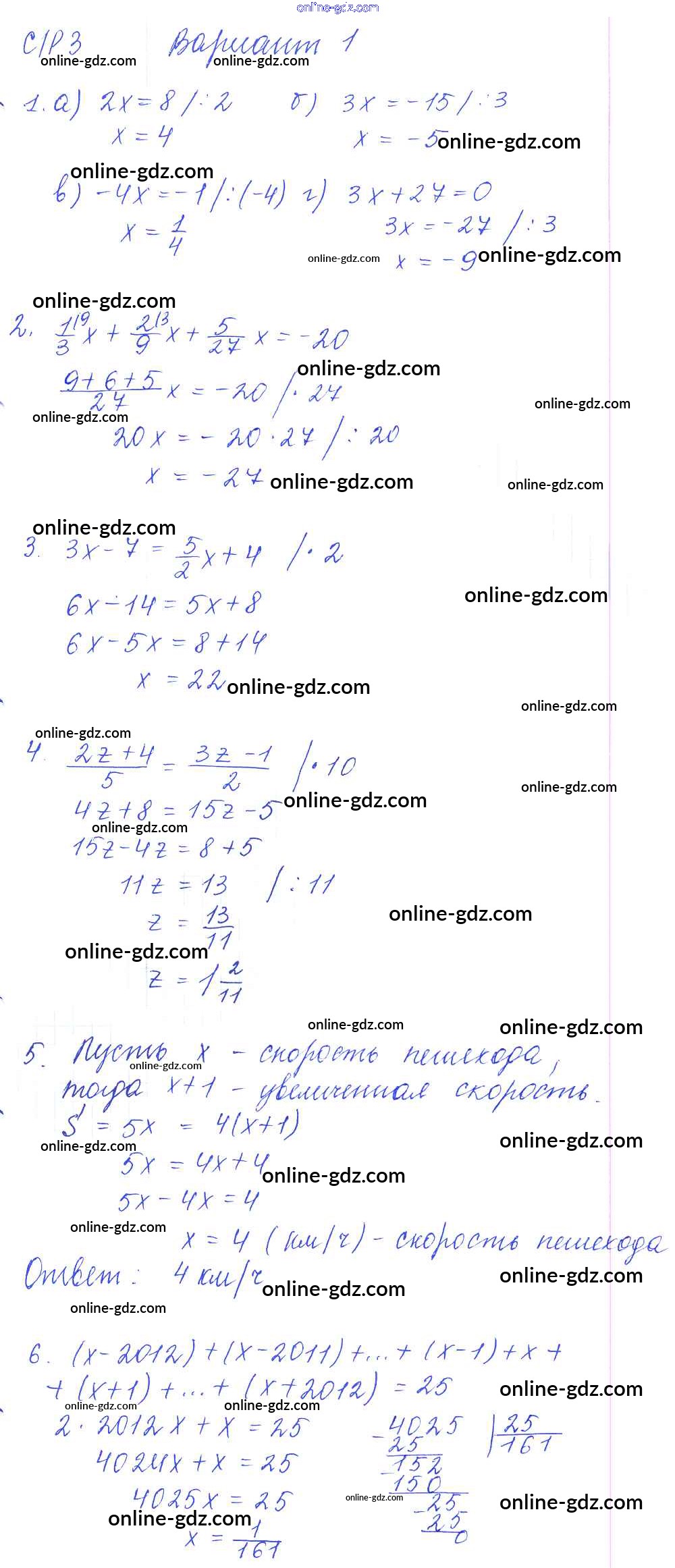 Готовые домашние задания по Алгебре за 7 класс Дидактические материалы Попов УМК 2016 - СР-3 Самостоятельные работы. Варианты 1