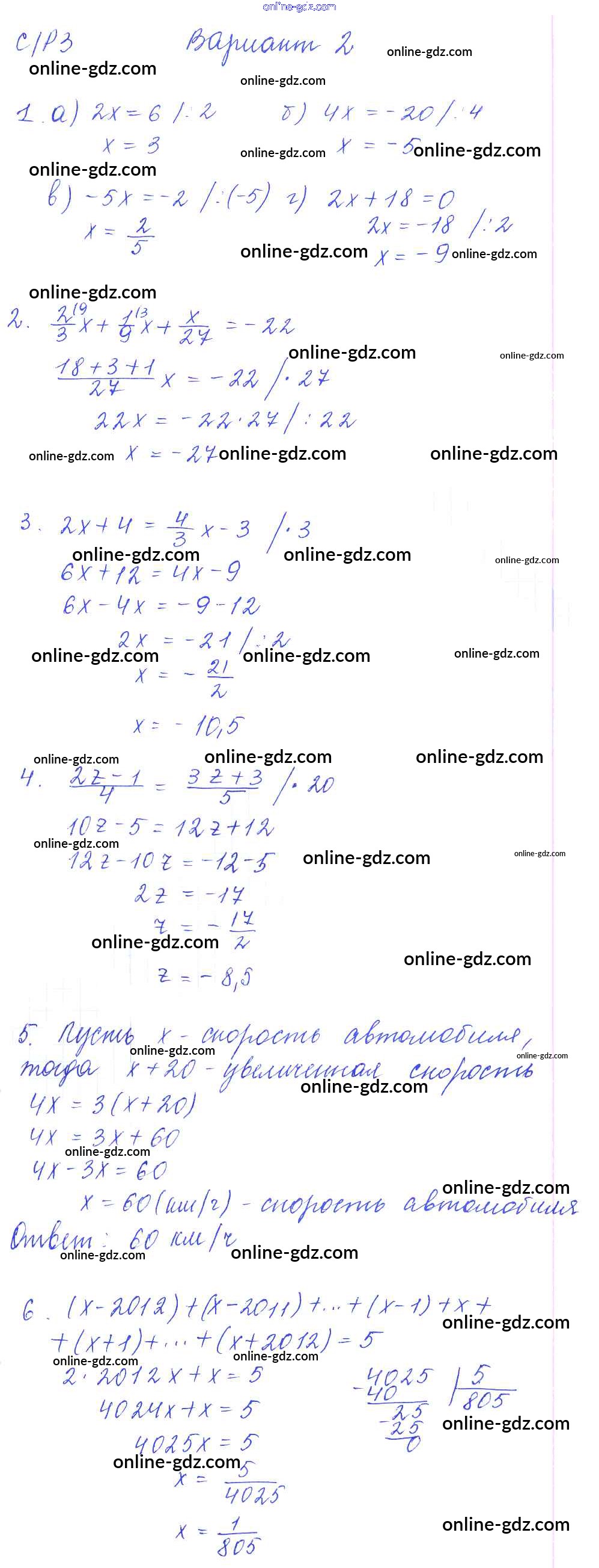 Готовые домашние задания по Алгебре за 7 класс Дидактические материалы Попов УМК 2016 - СР-3 Самостоятельные работы. Варианты 2