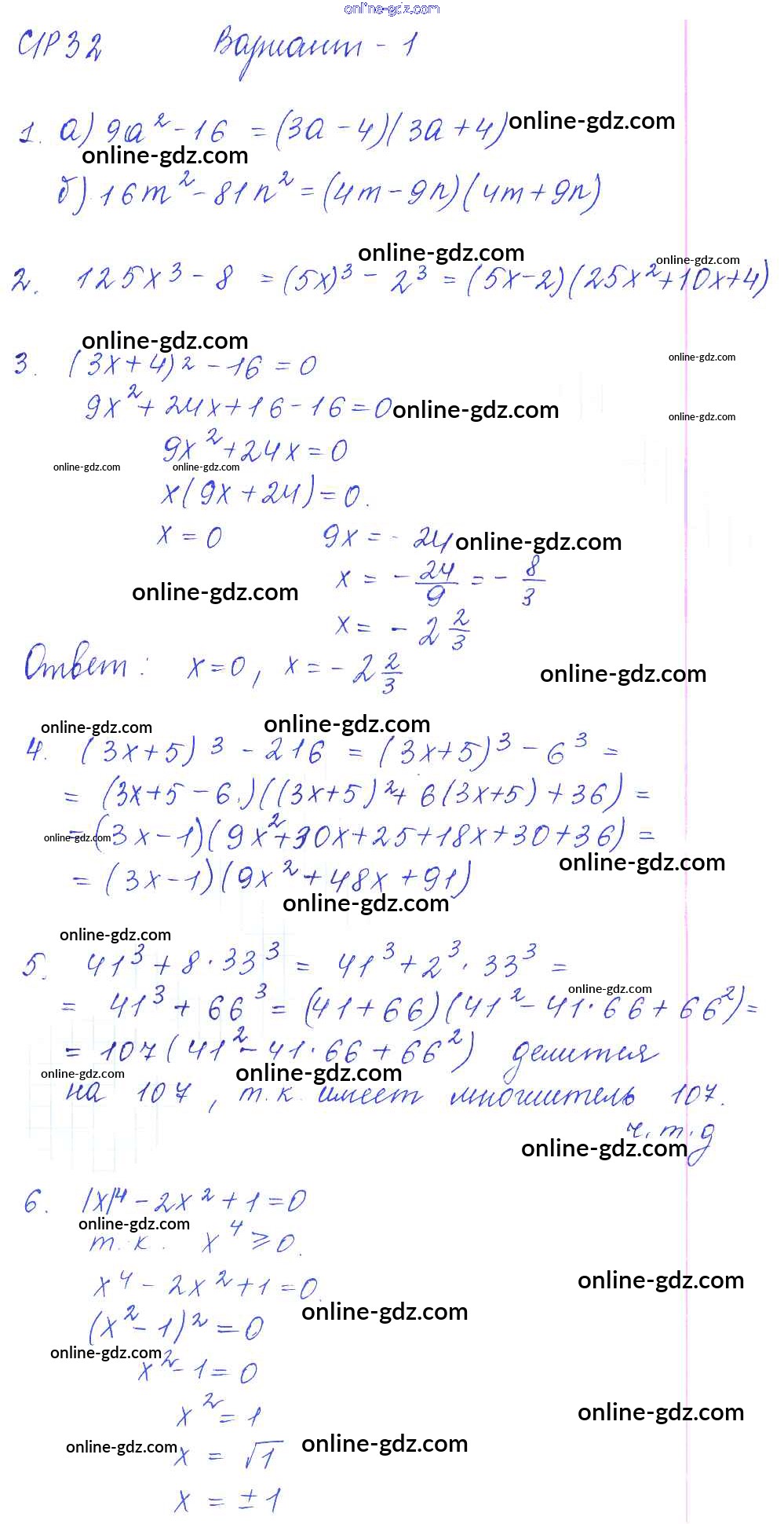Готовые домашние задания по Алгебре за 7 класс Дидактические материалы Попов УМК 2016 - СР-32 Самостоятельные работы. Варианты 1