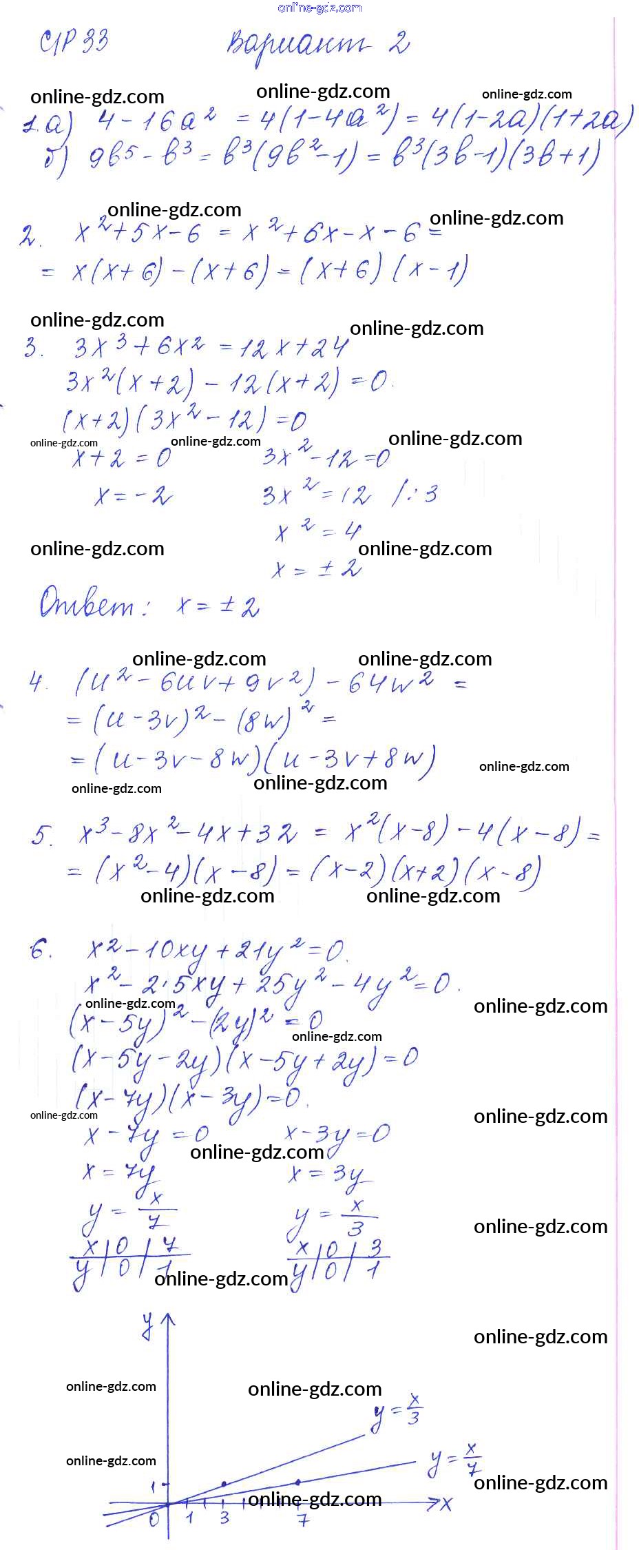 Готовые домашние задания по Алгебре за 7 класс Дидактические материалы Попов УМК 2016 - СР-33 Самостоятельные работы. Варианты 2