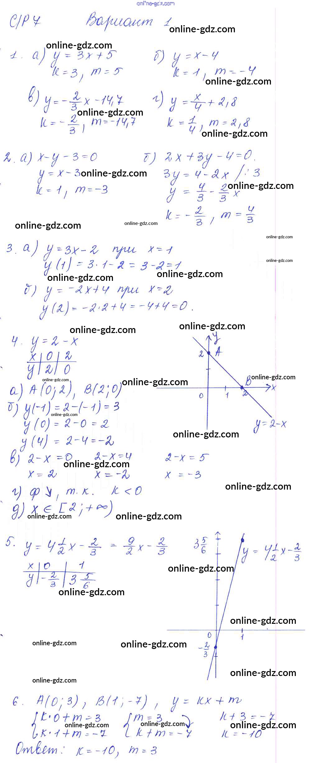 Готовые домашние задания по Алгебре за 7 класс Дидактические материалы Попов УМК 2016 - СР-7 Самостоятельные работы. Варианты 1